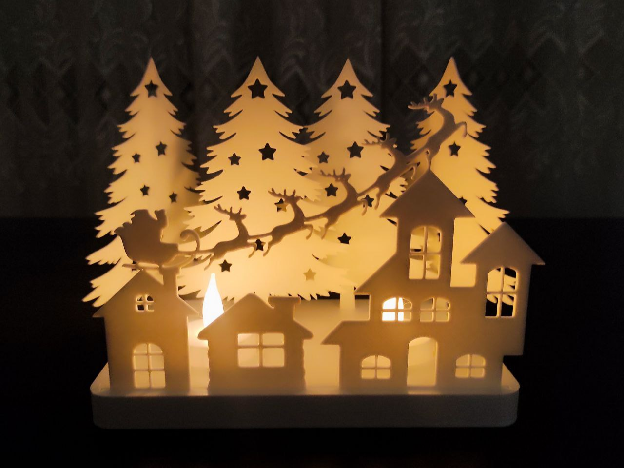 Vila de Inverno Branca traz a magia do Natal à vida através de um design lindamente detalhado e branco como a neve. Criado com precisão, este elegante ornamento apresenta pequenas casas acolhedoras, pinheiros altos e o Pai Natal com as suas renas a voar pelo céu estrelado. A suave luz interna cria um brilho dourado quente que contrasta perfeitamente com a sua superfície branca, tornando-o uma peça central para qualquer ambiente festivo.